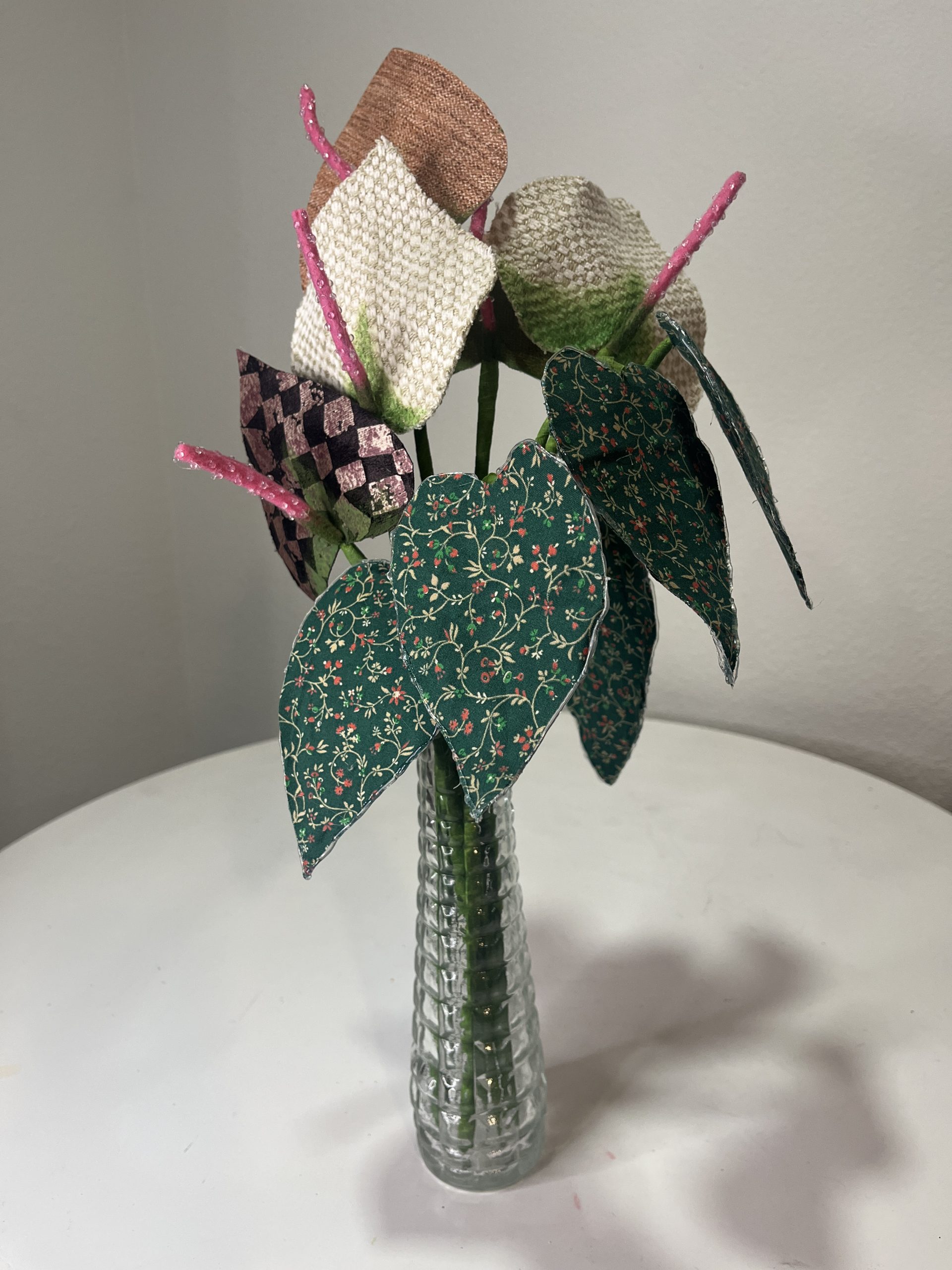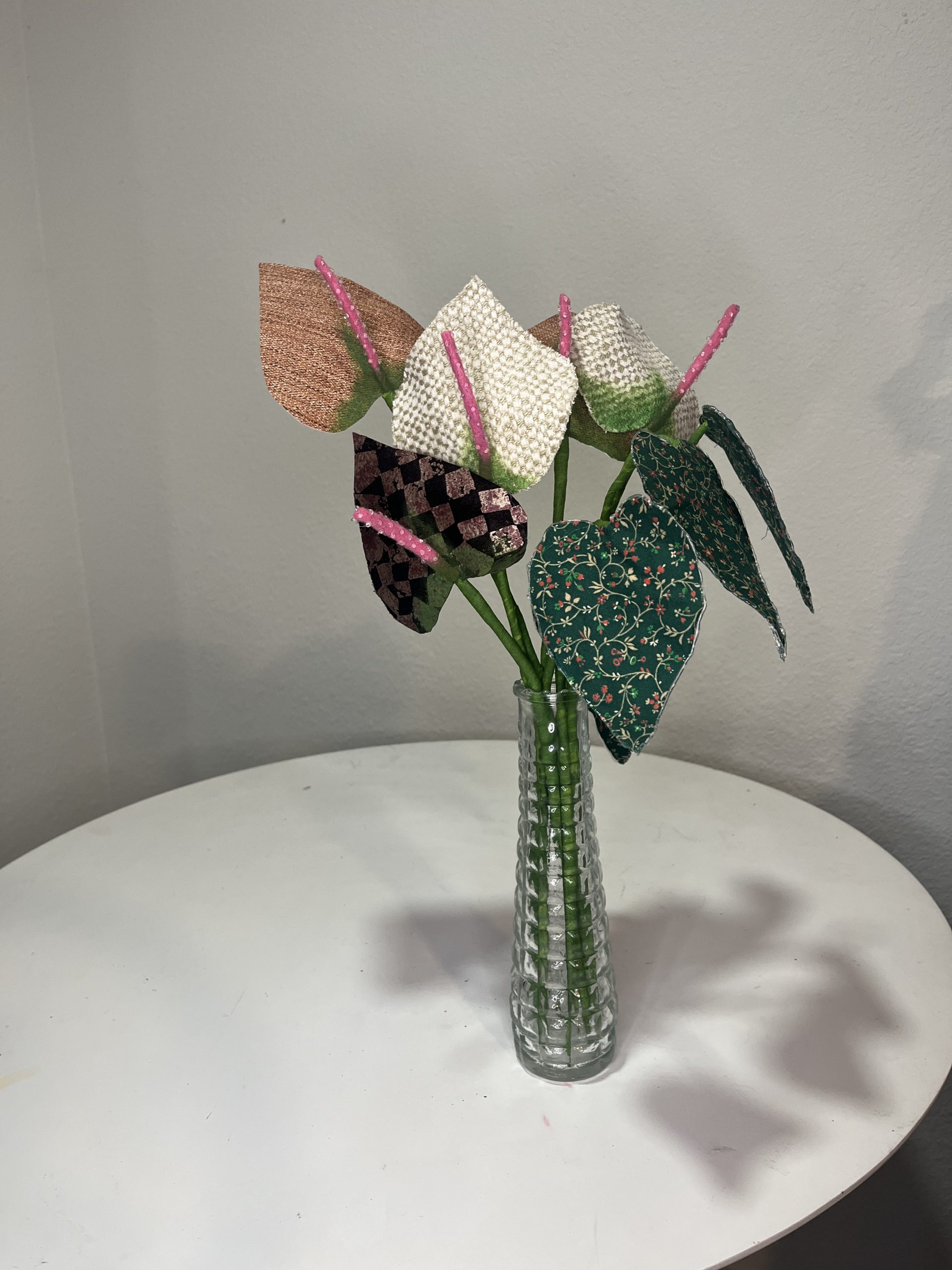 This is an special flower arrangement made inspired of one of many flowers my mom had have. The Anthurium, Lace Leaf Heart Flower, or “Flamingo Flower,” symbolizes hospitality, abundance, and love due to its heart-shaped flowers and ability to thrive in various environments.