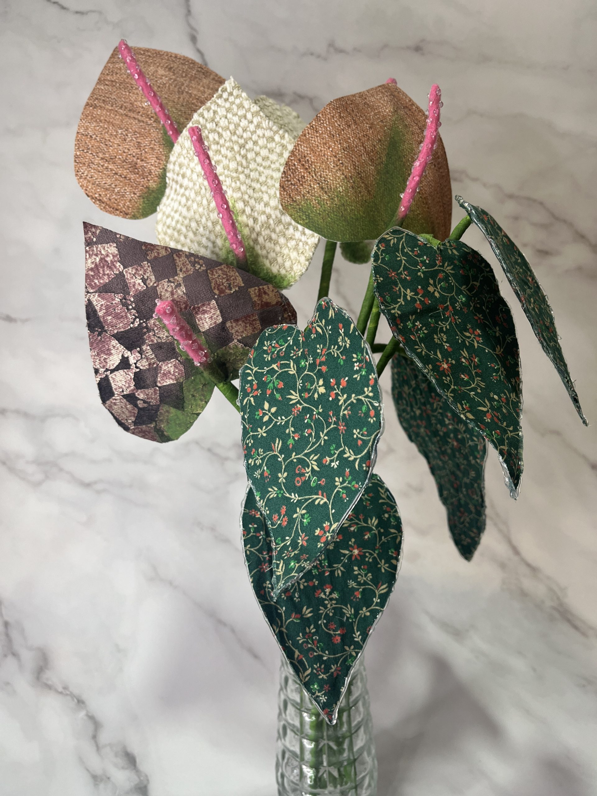 This flower arrangement was born from a memory — inspired by one of the many blooms my mother once cherished. The Anthurium, often called the Lace Leaf Heart Flower or Flamingo Flower, carries the tender symbolism of warmth, abundance, and love.
