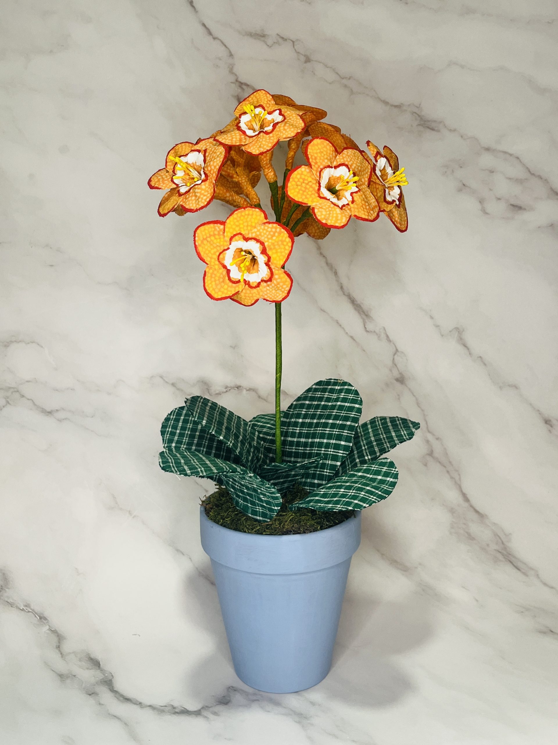 This Auricula flower is a splendid handcrafted and hand-painted potted flower that definitively bright any room and any person who stares at it.