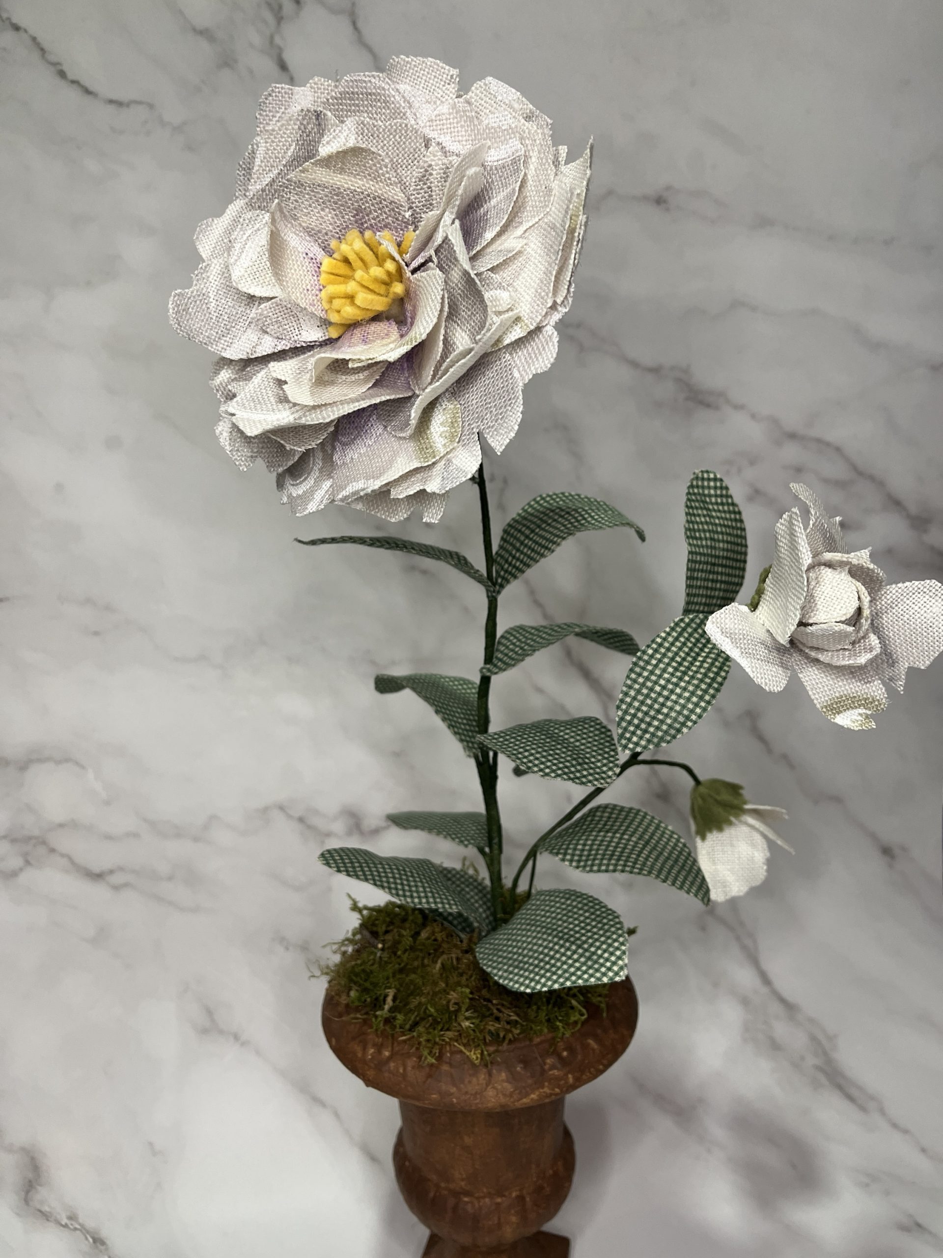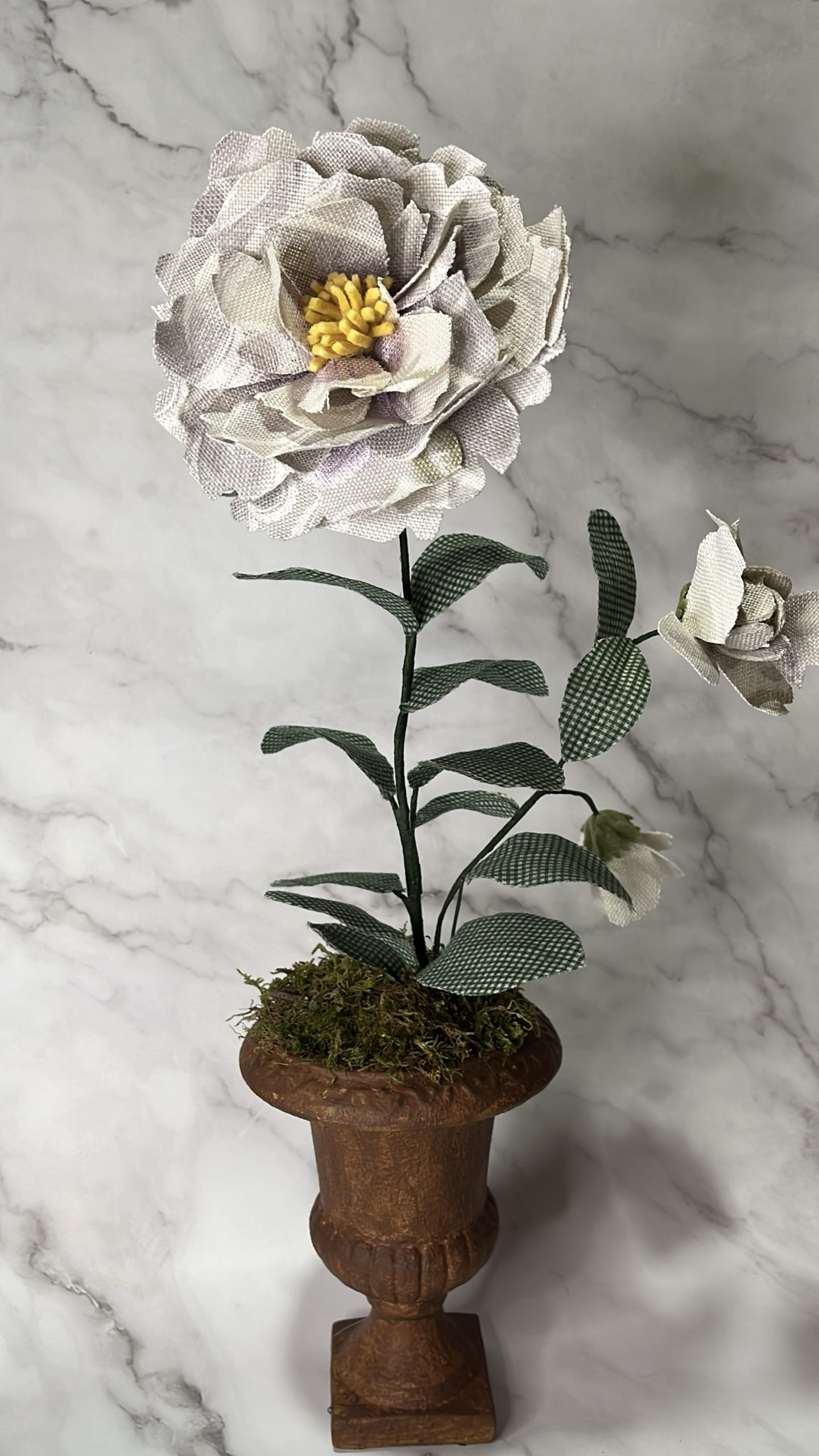 Cradled in a vintage Greek look pot with preserved moss, this 100% linen creation brings a serene elegance to any space. It’s more than décor — it’s a heartfelt gesture, a keepsake of craftsmanship that honors the art of slow creation.