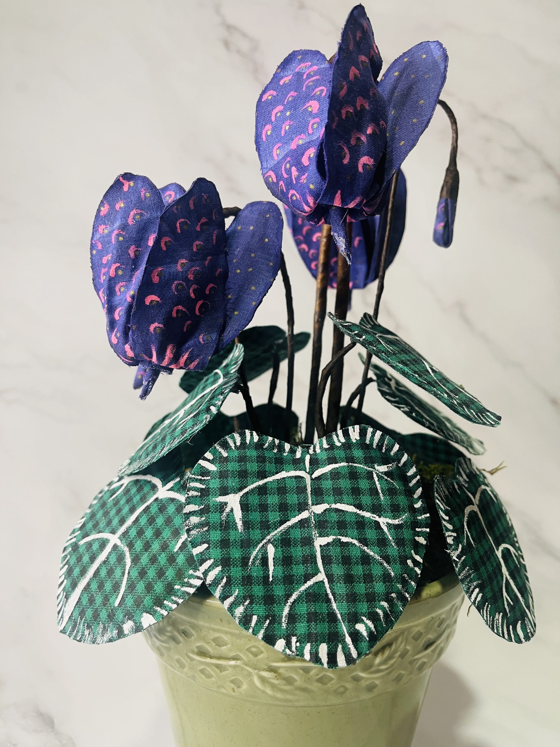 The cyclamen is handcrafted and hand-painted unique design. This is a statement piece is perfect for any room. A remembrance piece of art to show love and devotion. Give it as gift or pamper yourself with this rare but beautiful flower.