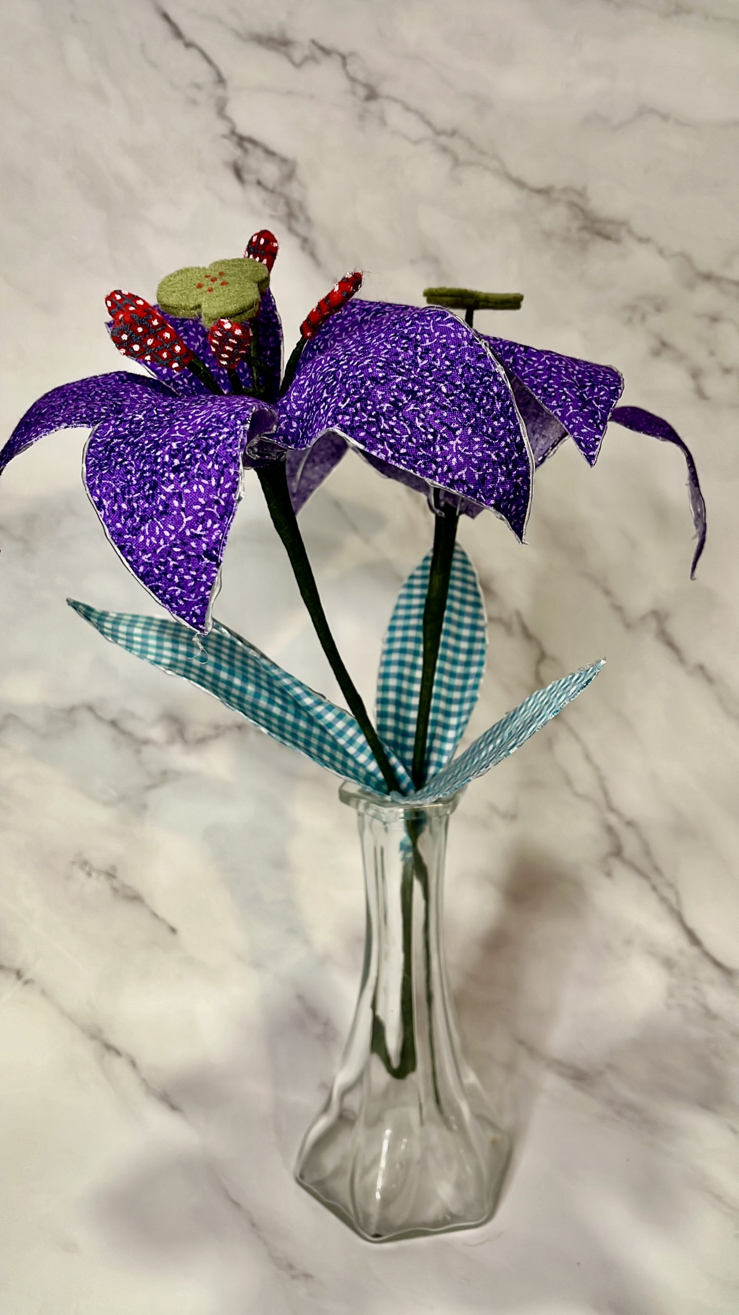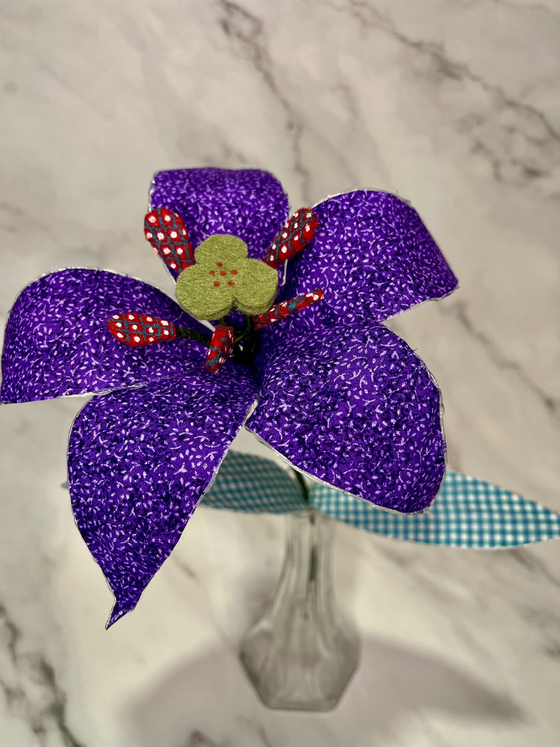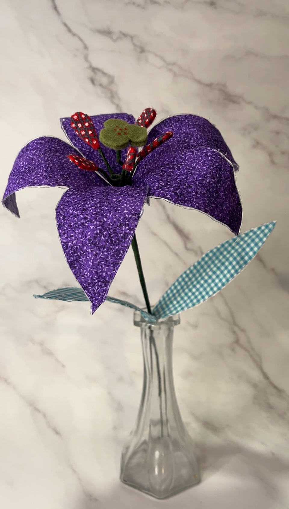 Measurements: 14″ approximately tall. The flower measures around 6″. Made out of fabric.