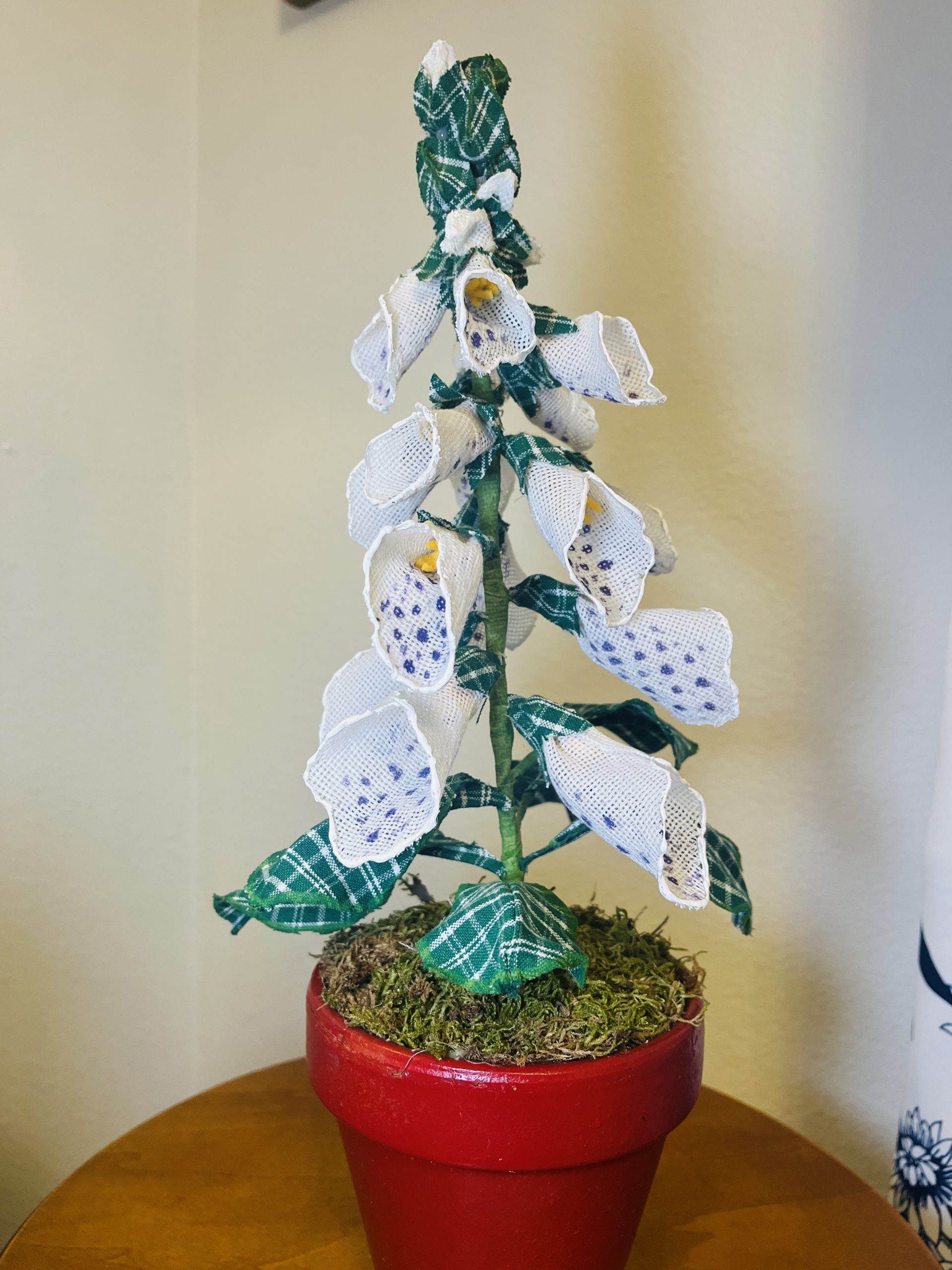 Meet Snow “The Foxglove Flower”. Especially made for those who adore beauty with meaning. This fabric potted flower brings the soft romance of English garden into timeless form.
